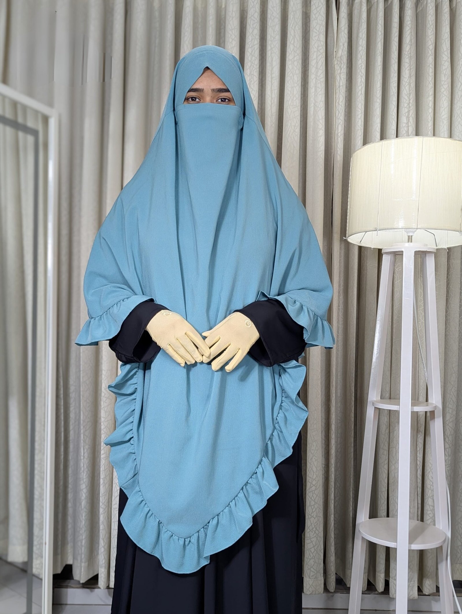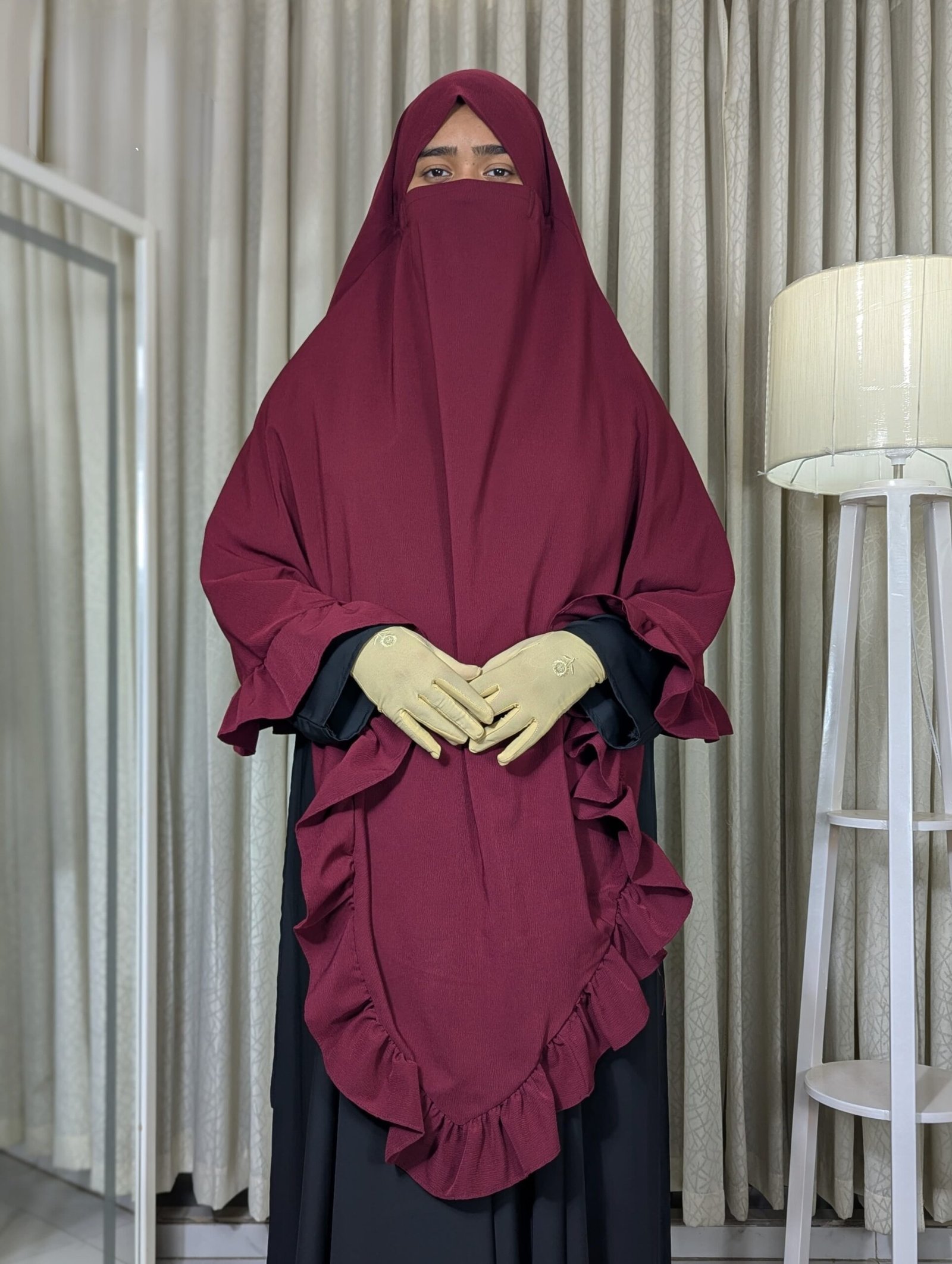 • ডিজাইন: ফ্রেঞ্চ কাট হিজাব (সাথে ইউনিক কুচি ডিজাইন)।